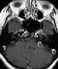 Cavernous sinus ICA aneurysms are more common in women and typically present over the age of 50. They may cause palsies of cranial nerves 3, 4, 6, as well as the first and second divisions of the trigeminal nerve since these nerves lie within the cavernous sinus. A variable amount of thrombosis may be present. In this case, the aneurysm is most likely partially thrombosed due to the complex, layered signal. The presence of the phase encoding artifact proves that there is at least some flow. Related Cases